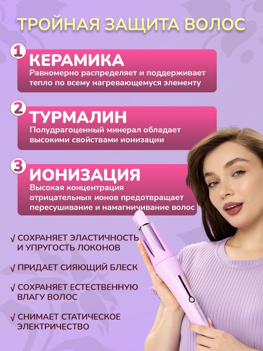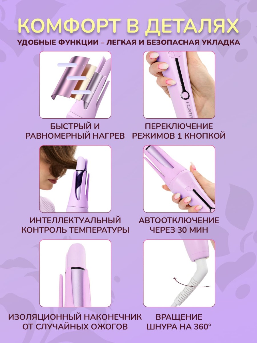 Автоматическая плойка FORTENGO AUTO CURLER RW-J882 (сиреневая) используется для завивки волос и создания локонов. Теперь сделать свой неповторимый образ легко и просто всего за 5 минут. Стильная укладка дома – как в салоне красоты.