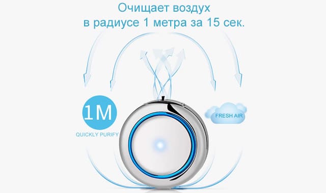 Персональный очиститель – ионизатор воздуха – это портативный и компактный прибор. При первом знакомстве с ним создается впечатление, что это изящное украшение, в виде кулона или подвески. Его можно принять за ультрамодный и стильный аксессуар, потому что прибор абсолютно бесшумный. А на самом деле это заботливый инновационный мини комплекс, который обеспечивает комфортную и безопасную зону дыхания в радиусе 1 кубического метра.