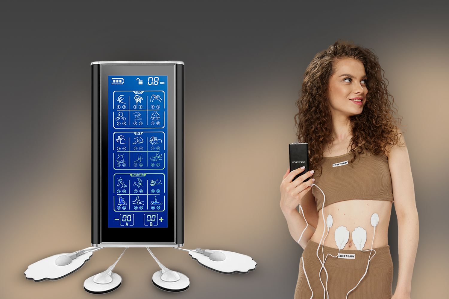 Пояс миостимулятор для тренировки пресса и похудения FORTENGO EMS-080