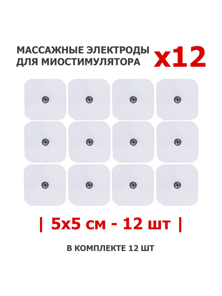 Электроды для миостимулятора EMS-130PL 5х5 см, 12 шт, универсальные используются как дополнительный аксессуар для массажера миостимулятора. Предназначены для многоразового применения. Гелевая липучка фиксатор электрода позволяет проводит EMS и TENS импульсы во время миостимуляции и эффективно делать массаж тела.