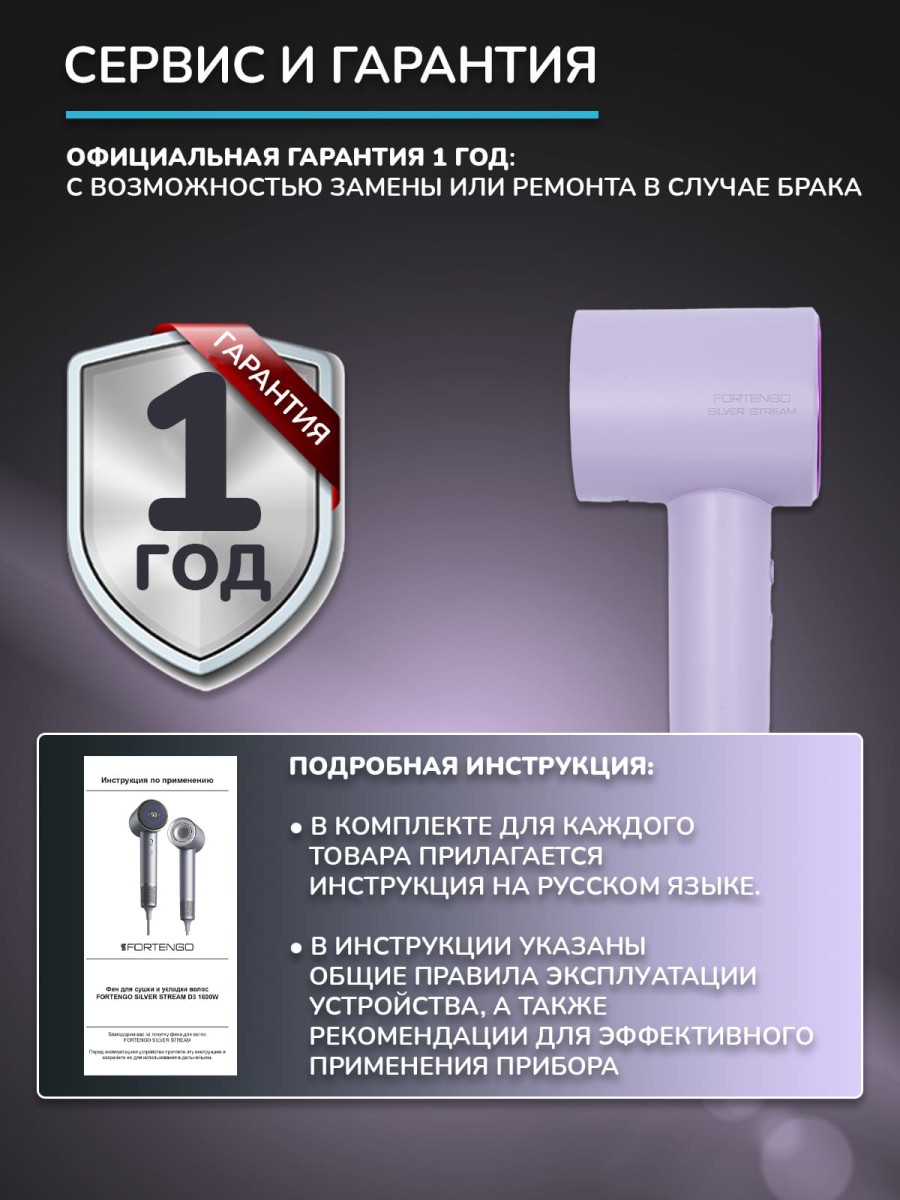 Фен FORTENGO SILVER STREAM D3 – это элегантность в деталях, оригинальный дизайн, незабываемый цвет. Лаконичный и изысканный, профессиональный помощник - всегда у Вас под рукой!