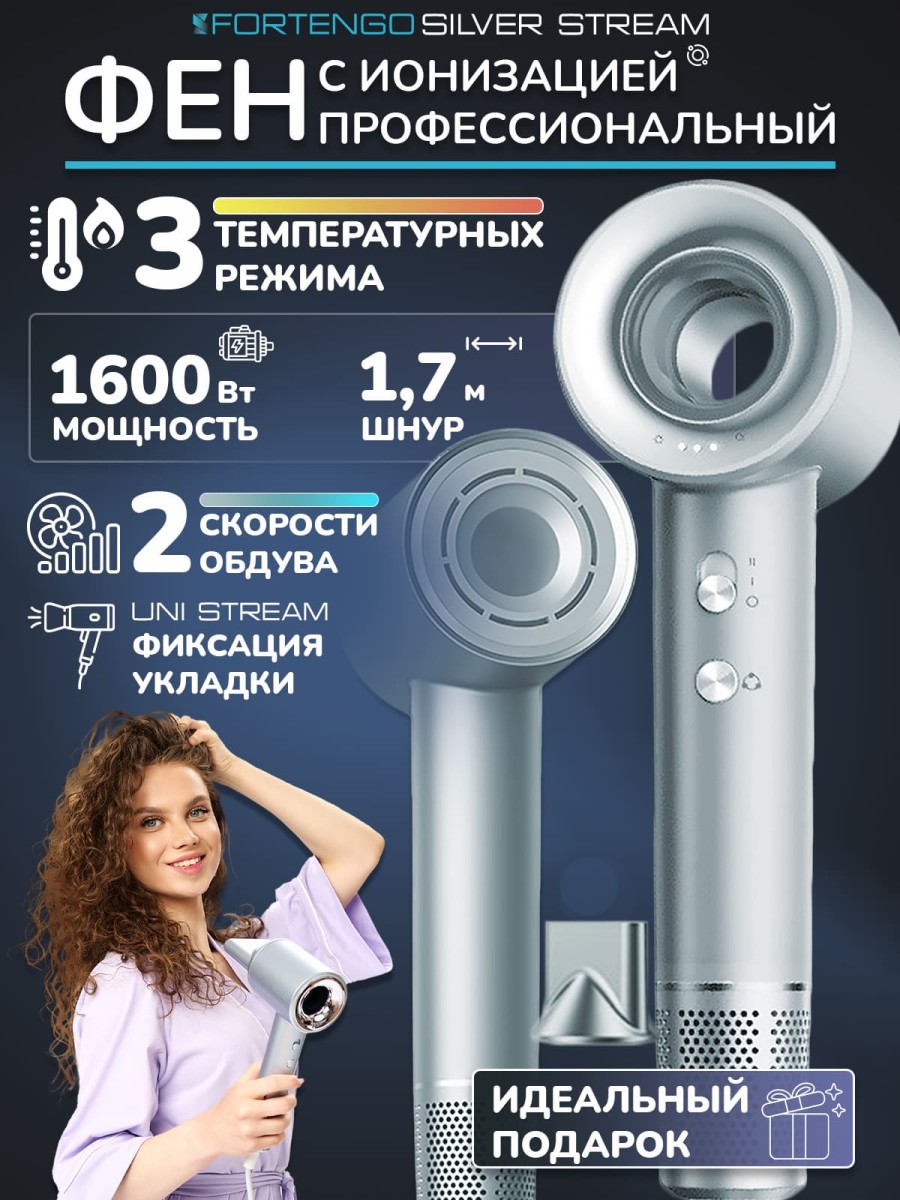 Фен FORTENGO SILVER STREAM D8 отличный подарок для любого повода: