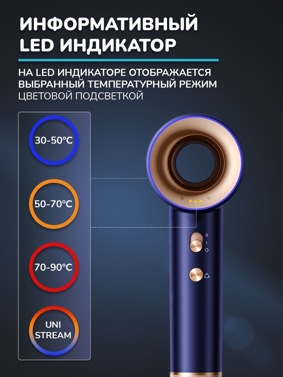 Функция UNI STREAM – это комбинированная подача теплого и горячего воздуха в диапазоне от 30° до 90°С. Обеспечивает безопасную сушку, укладку и фиксацию волос. Создает прикорневой объем и придает блеск волосам. Подходит для всех типов волос, в том числе для пористых, поврежденных или пересушенных.