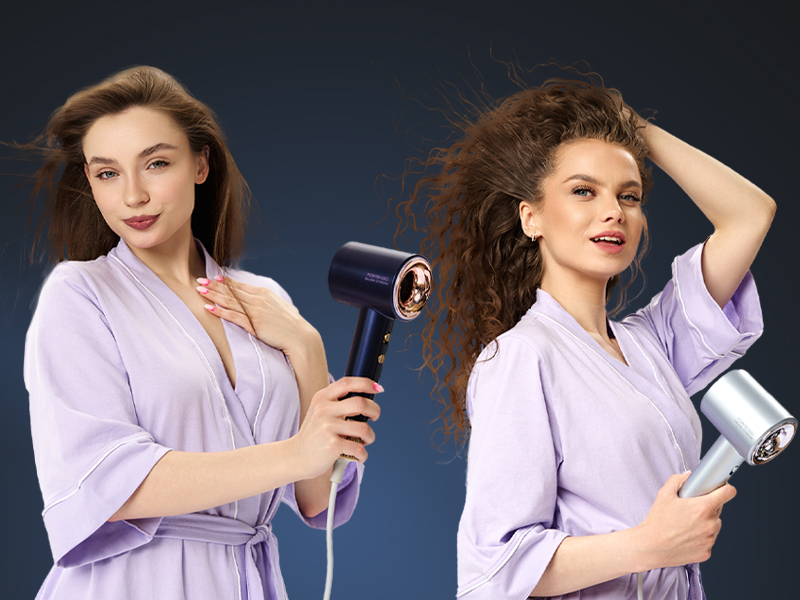 Поэтому покупайте домашний фен для волос со сверхскоростным BLDC мотором с цифровым управлением и защитой от перегрева мощностью 1600 Вт или бесщеточным АС мотором мощностью 2000 Вт. Такие приборы являются универсальными и подходят для волос любого типа и длины.