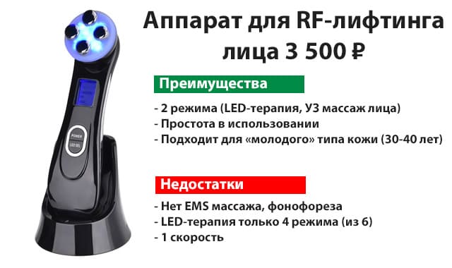 Вывод: массажеры для лифтинга лица данной ценовой категории обладают всеми необходимыми методами для коррекции и подтяжки овала лица в домашних условиях и направлены на устранение всех основных признаков старения и увядания кожи. Рекомендованы для применения от 30 лет. Особенно эффективны для женщин от 40 лет и старше. Кроме того, за счет функций: охлаждения синим LED светом, антибактериальной, и ультразвуковой обработки, теплового воздействия подходят для молодой кожи от 13 лет для устранения прыщей и угрей.
