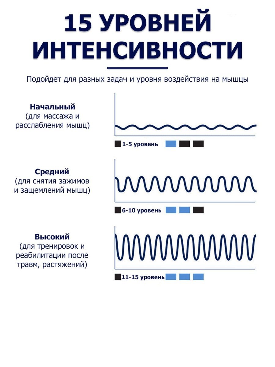 - 5 программ массажа для устранения судорог, боли, гипертонуса мышц