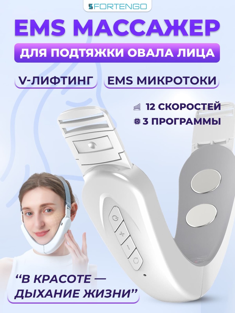 Массажер для подтяжки овала лица FORTENGO MPF-13 микротоковый, EMS (белый) используется для массажа, устранения морщин и второго подбородка, подтяжки и V лифтинга овала лица.