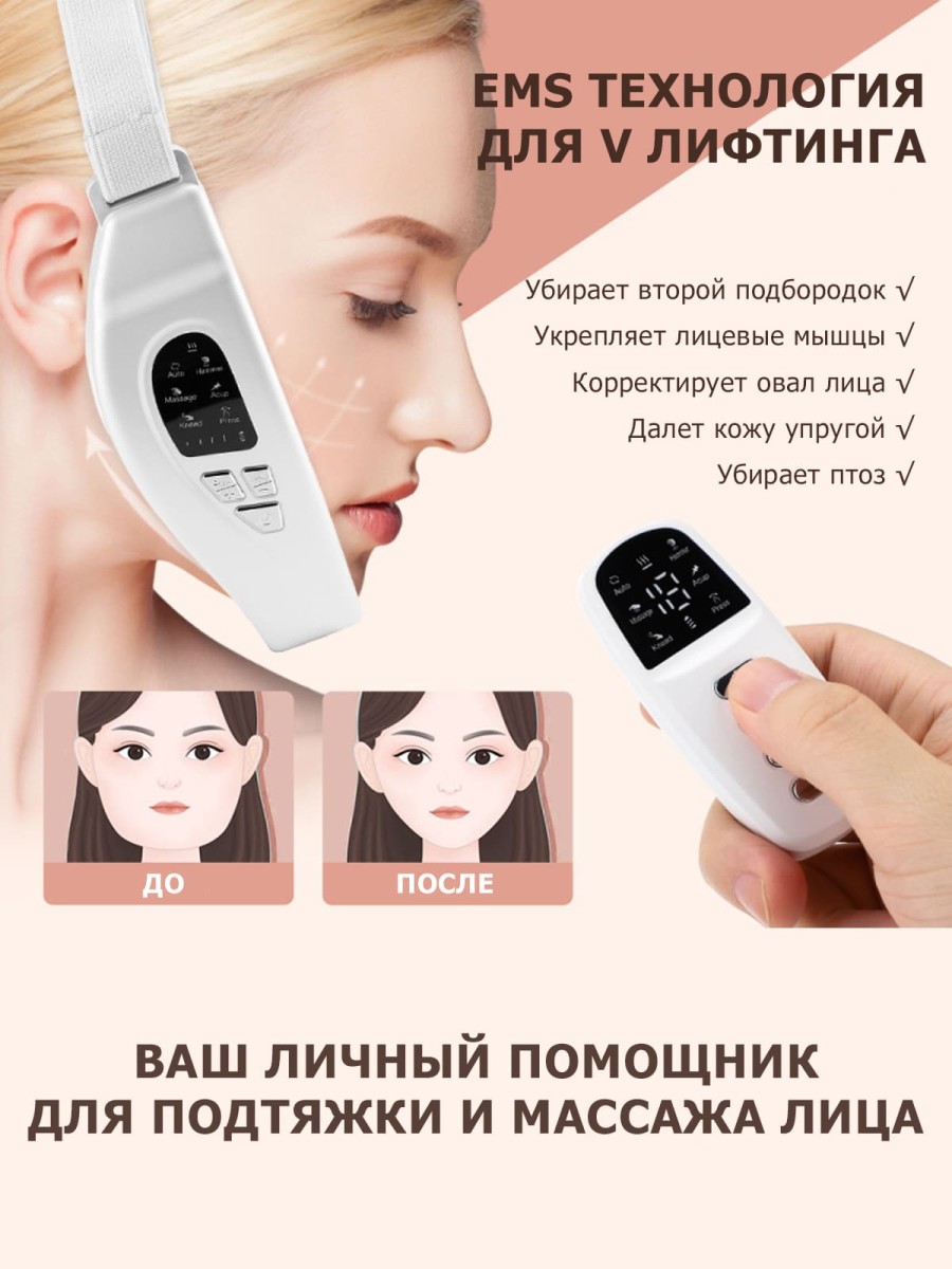 Массажер для подтяжки овала лица FORTENGO MPF-17 микротоковый, EMS, LED-свет, вибромассаж, белый используется для массажа, устранения морщин и второго подбородка, подтяжки и V лифтинга овала лица. Помогает избавиться от возрастных изменений, «второго подбородка», сделать кожу упругой и подтянутой.