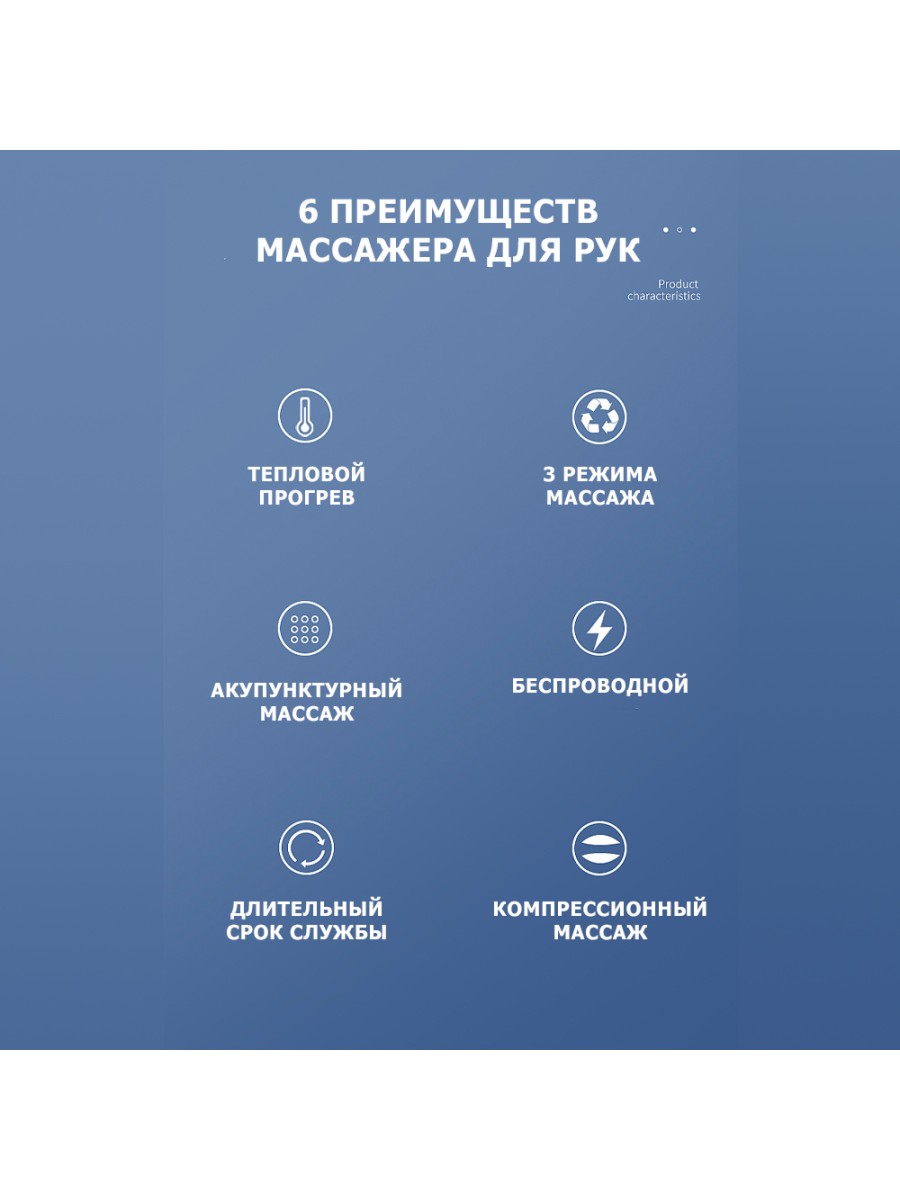 - 3 программы: акупунктурный, вибрационный, компрессионный позволят проработать мелкие группы мышц и улучшить внешний вид и состояние кожи рук