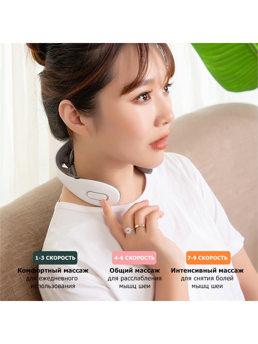 Массажер для шеи FORTENGO MSG-023 электрический, импульсный, с тепловым прогревом, TENS EMS технологией, беспроводной - отличная идея для подарка родным и близким.