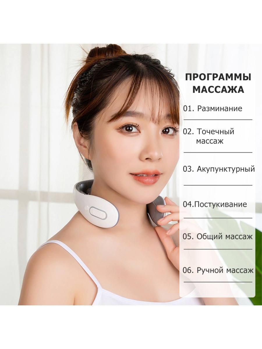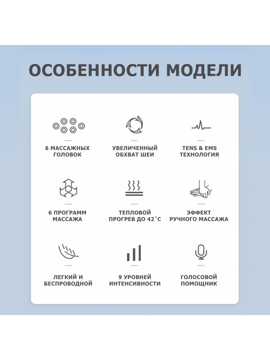 Массажер для шеи MSG-023 электрический, импульсный, с тепловым прогревом, TENS EMS технологией, беспроводной - новая модель 2023 года с увеличенным обхватом шеи, с 6-ю адаптивными массажными головками и голосовым помощником. Прибор обеспечивает безопасный ИК прогрев до 42 ℃ и улучшенную технологию массажа, повышая при этом результативность воздействия в 2 раза!