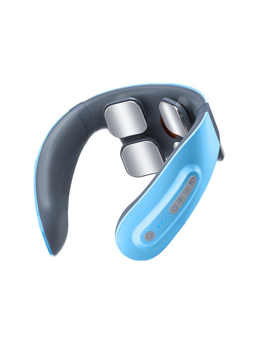 Массажер для шеи электрический, импульсный FORTENGO MSG-025, ИК прогрев, пульт ДУ, TENS/EMS, синий используется для массажа шеи и шейно-воротниковой зоны.