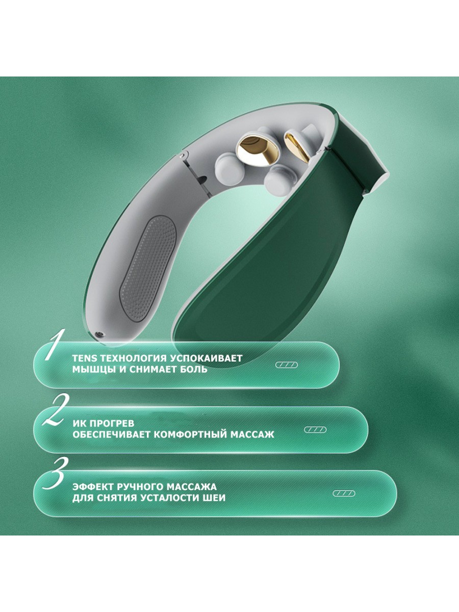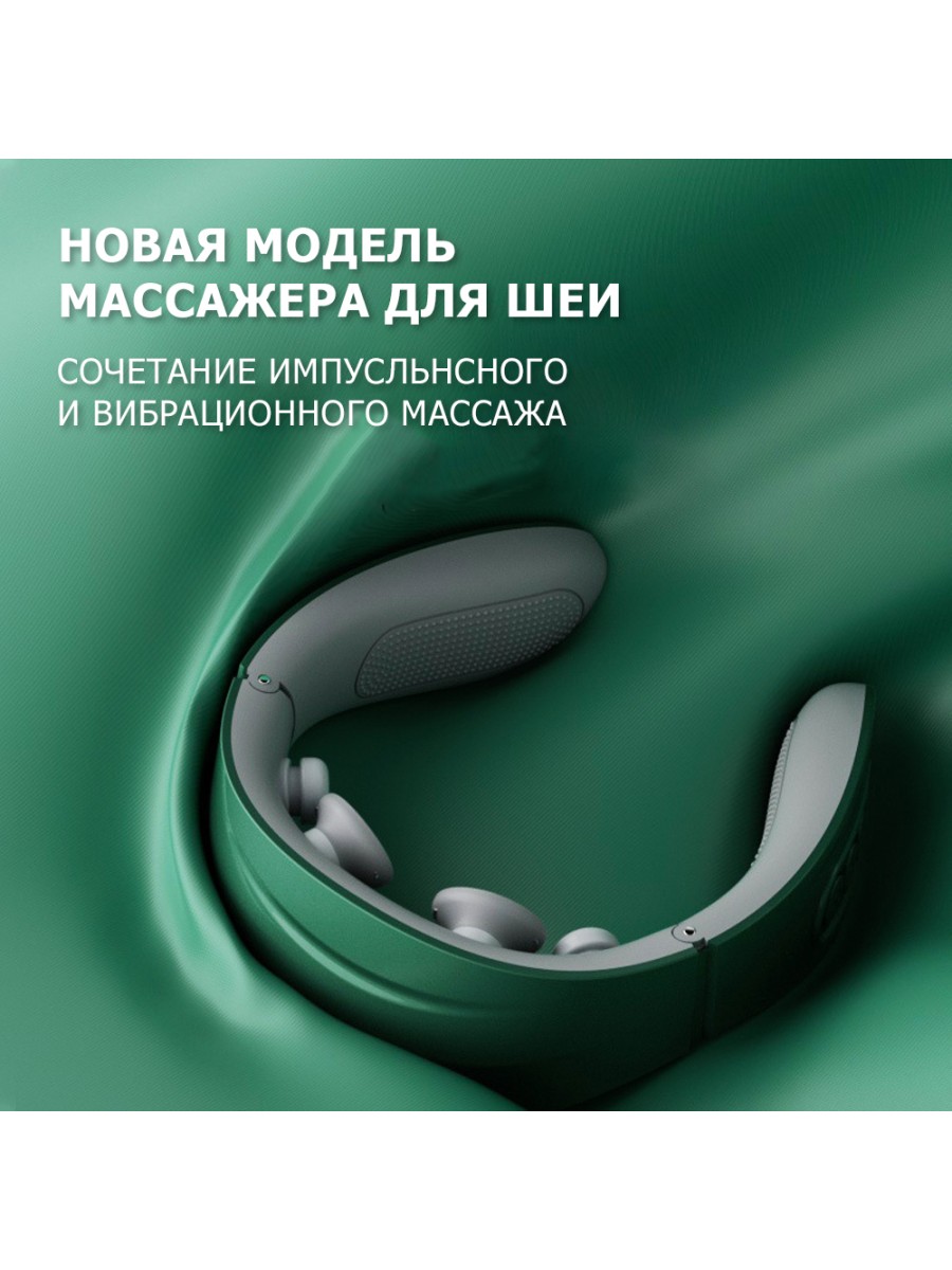 Массажер для шеи электрический, импульсный FORTENGO MSG-031, вибромассаж, ИК прогрев, TENS/EMS, зеленый используется для массажа шеи и шейно-воротниковой зоны.