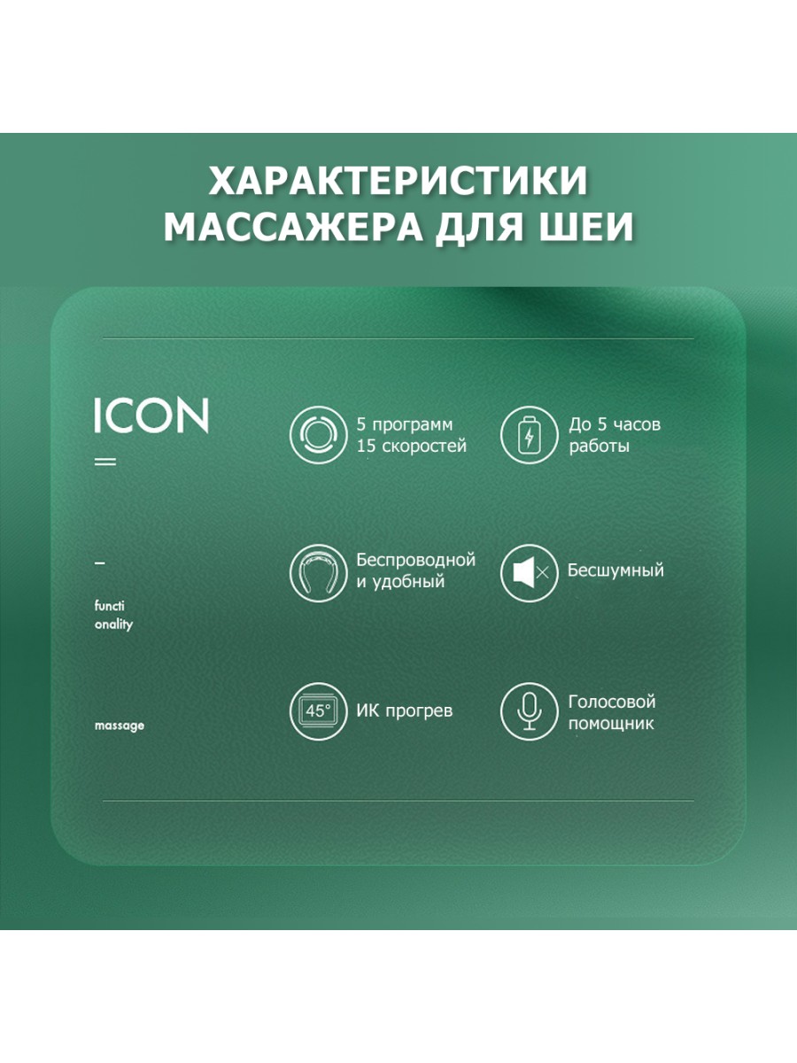 - EMS и TENS технология осуществляет массаж шеи электрическими импульсами снимает спазмы, устраняет боль, восстанавливае мышцы.