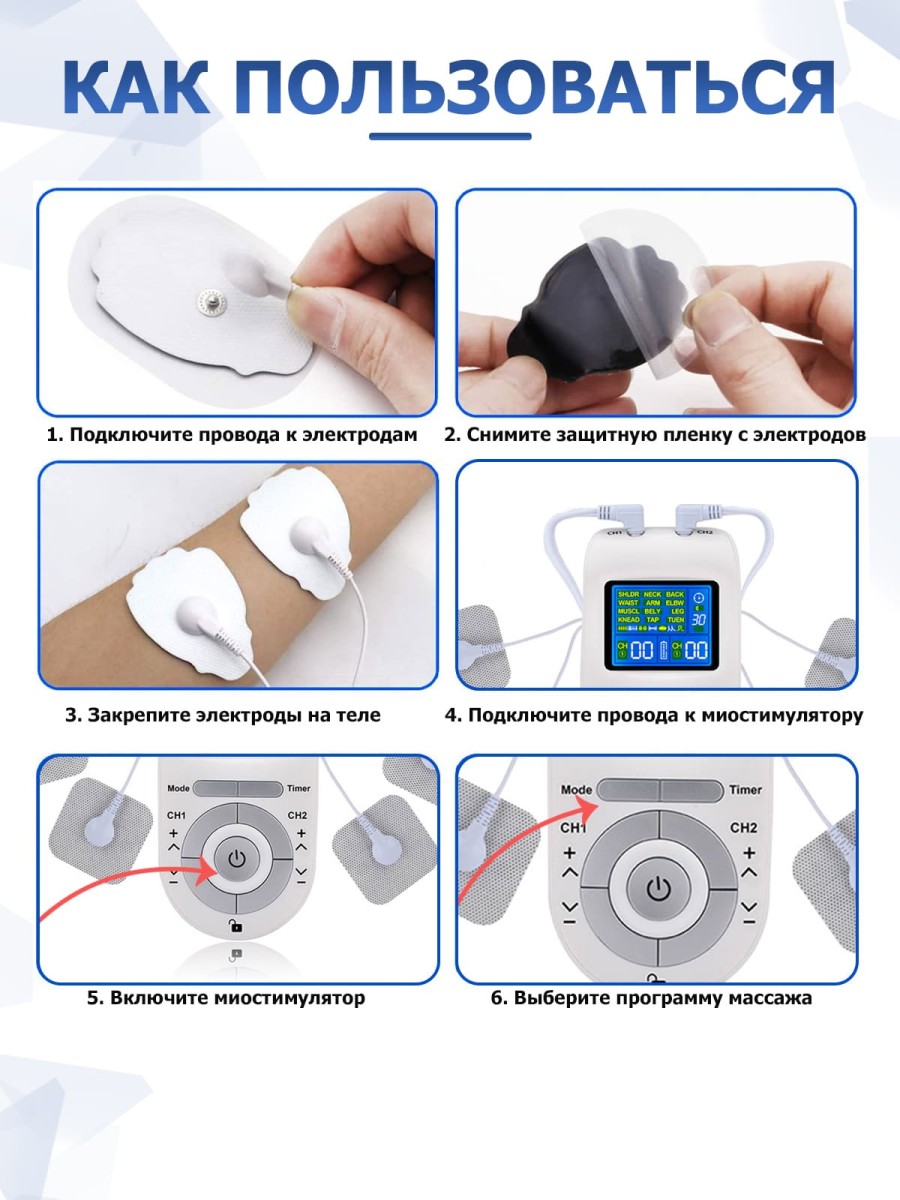Многофункциональный массажер миостимулятор эффективен против различных видов боли, остеохондроза, защемления мышц и нервных окончаний, помогает восстановить кровообращение, укрепить мышцы и обрести фигуру своей мечты без изнурительных диет и ежедневных тренировок.