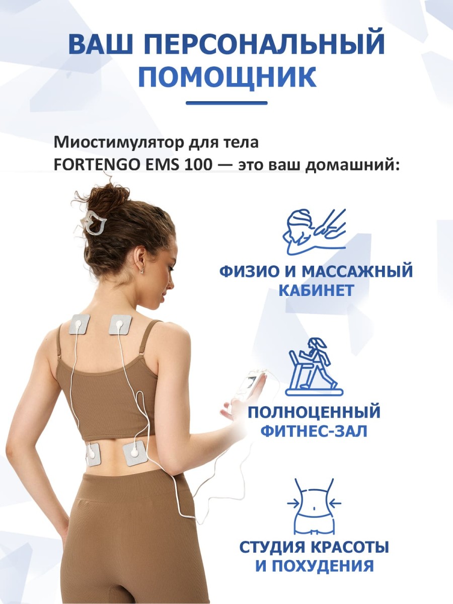 Массажер миостимулятор для тела FORTENGO EMS-100 2 канала, 12 программ, EMS/TENS, бежевый — это умный помощник на каждый день. С ним Вы сможете быстро и легко: