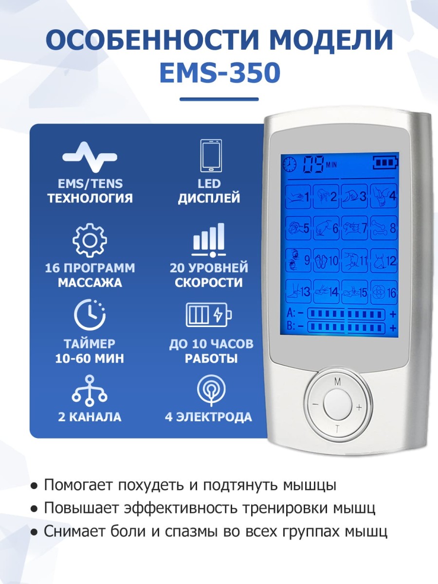 Массажер миостимулятор EMS TENS для тела EMS-350 отличается многофункциональностью и эффективностью.