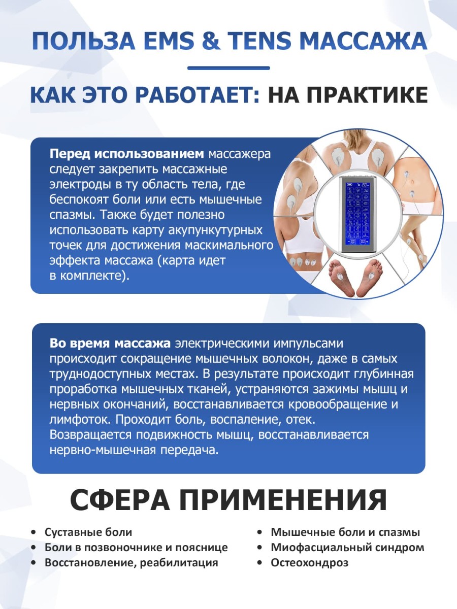 Действие массажера миостимулятора для тела EMS-450 основано на новейших массажных технологиях: