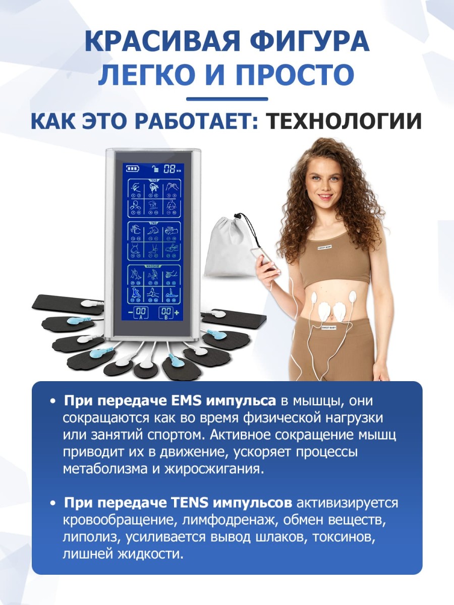 Массажер миостимулятор EMS-450 — это умный помощник на каждый день. С ним Вы сможете быстро и легко: