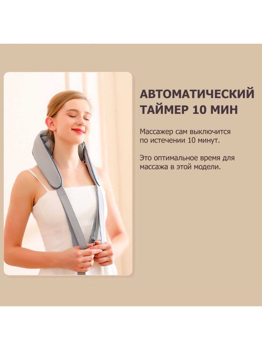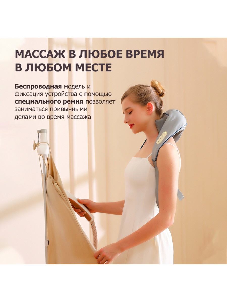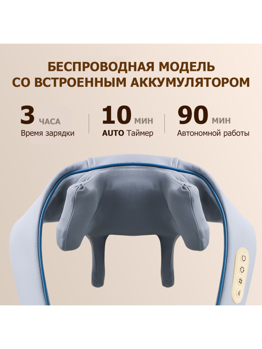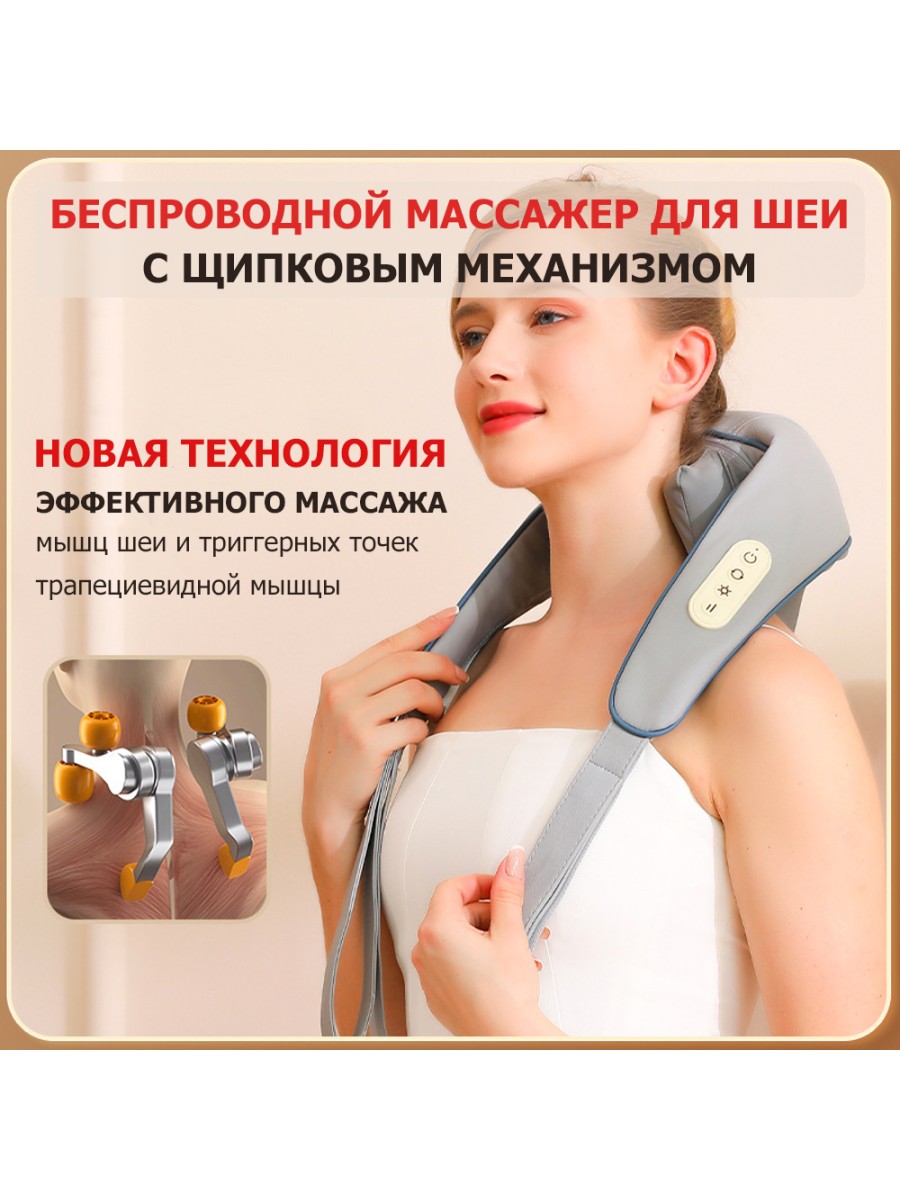 Массажер роликовый для шеи и плеч, электрический FORTENGO KZ0309 с щипковым механизмом и подогревом, беспроводной (серый) используется для массажа тела: шеи, трапециевидной мышцы, плеч, спины, ног, живота.