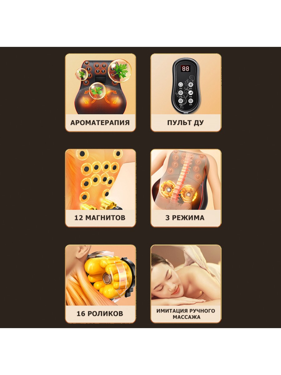 - 12 встроенных магнитов расположены на корпусе массажной подушки.