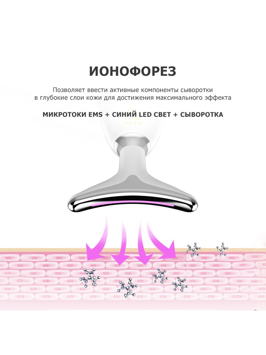 Ионофорез позволяет применять массажер для «мезотерапии без иглы», что позволяет достичь отличный результат по уходу и омоложению кожи лица за 1 сеанс применения.