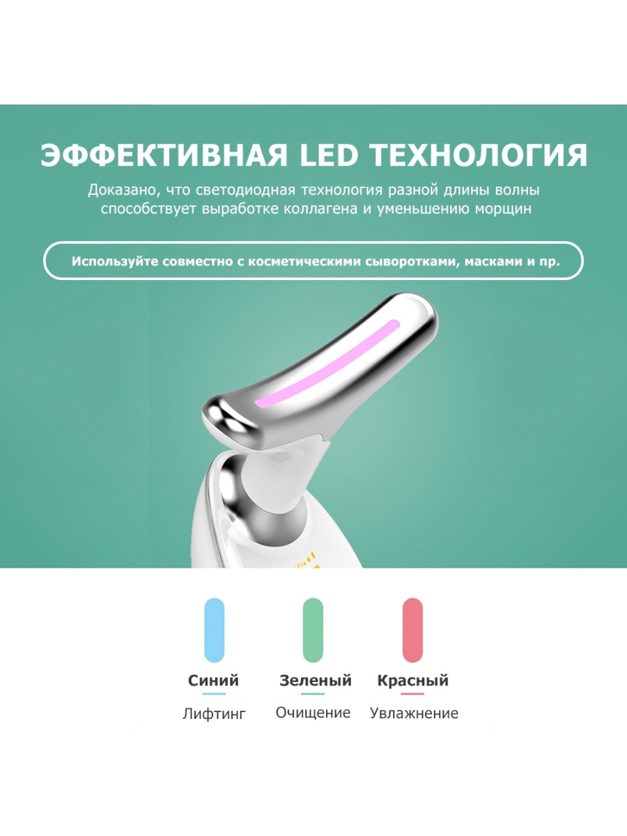 - LED световые волны (зелена, красная, синяя) для омоложения кожи, усиления эффекта и результата каждой массажной программы