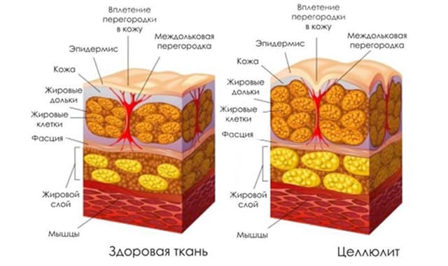 Целлюлит – это изменение жировой ткани, которое проявляется на поверхности кожи в виде мелких, неровных бугорков, напоминающих апельсиновую корку. В местах образования целлюлита (излишнего скопления жировой ткани) всегда происходит замедление циркуляции крови и лимфы, скапливаются отходы метаболических процессов в клетках и тканях. В результате чего возникают отеки, бугристые отложения, отвисания ягодиц, «галифе» на бедрах. Застой крови и лимфы, а следовательно, и образование целлюлита на поверхности кожи, возникает в результате недостатка тонуса и двигательной активности мышц.