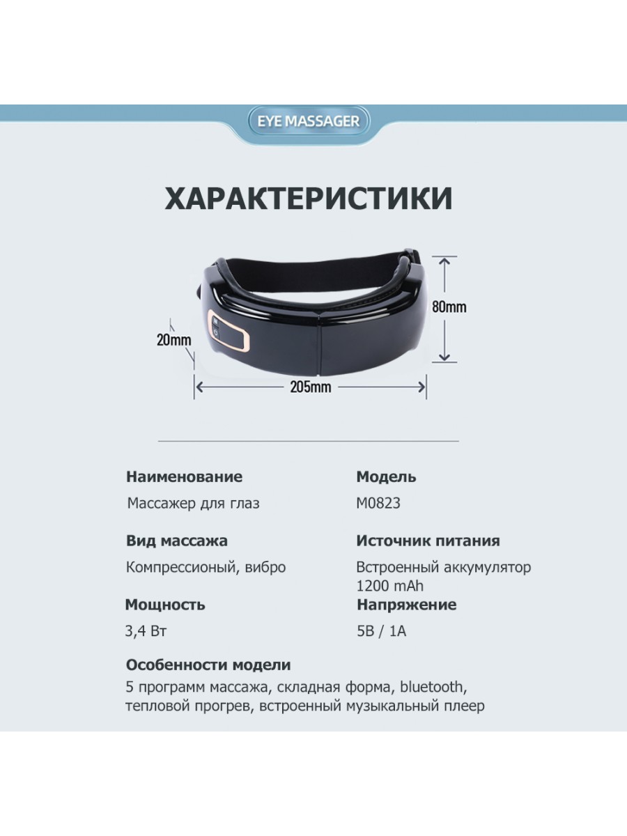 Массажер M823 отличается многофункциональностью и эффективностью, является современным инновационным способом для того, чтобы снять усталость и поддержать здоровье своих глаз.