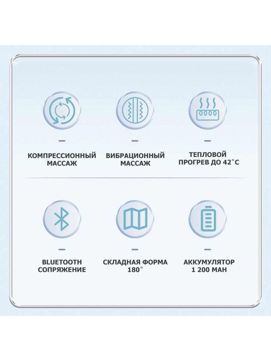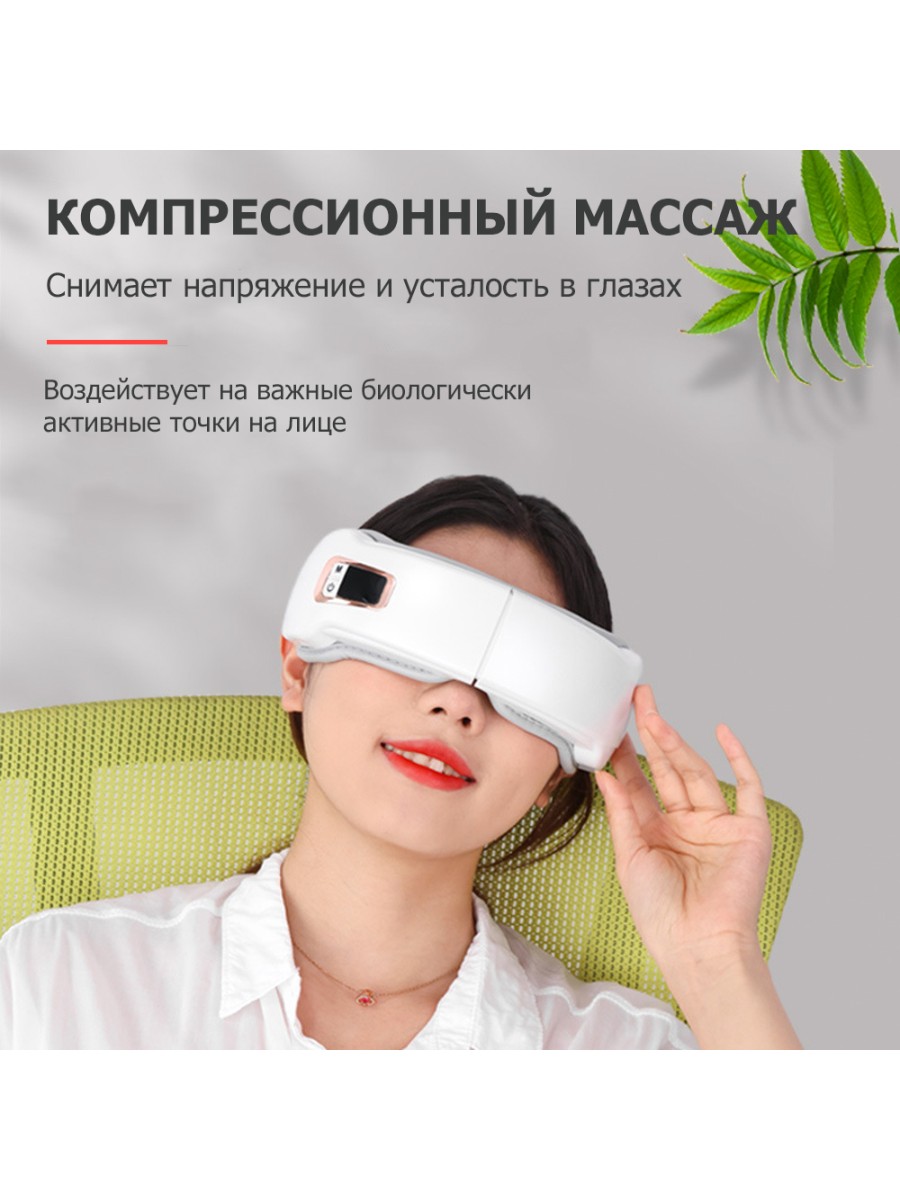 - Компрессионный массаж; под действием внутреннего компрессора воздушные подушки массажера последовательно сдуваются и надуваются, обеспечивая очень приятный и нежный массаж глаз и височной зоны.