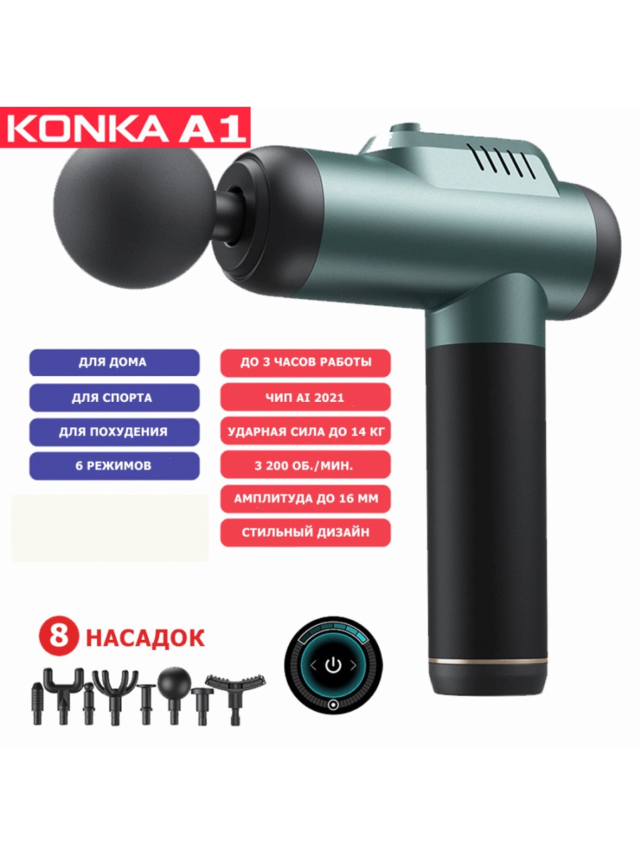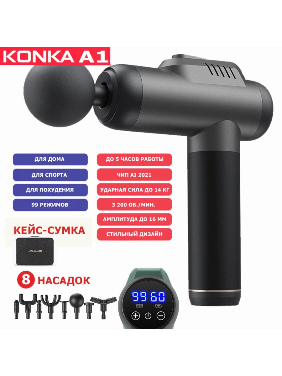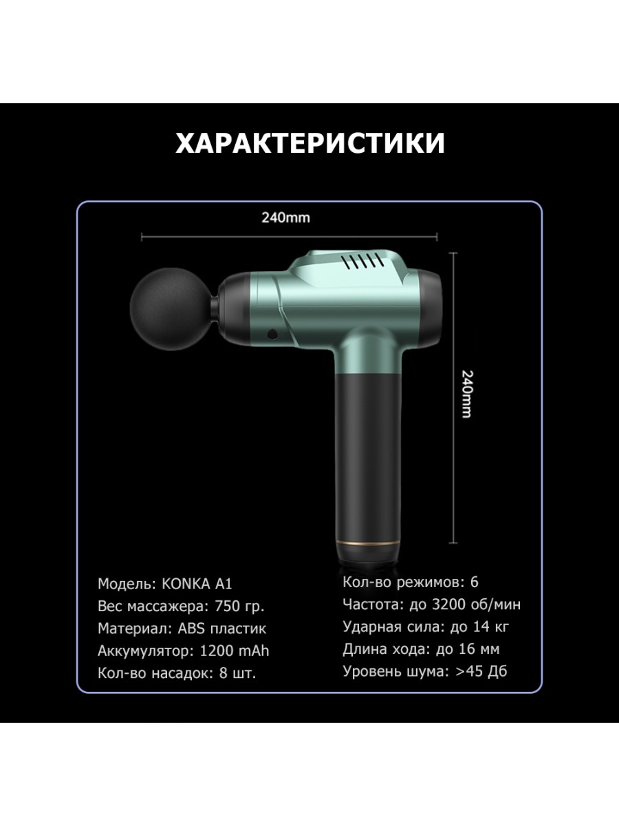 - 8 массажных насадок позволят проработать все проблемные болевые зоны, группы мышц и триггерные точки боли.