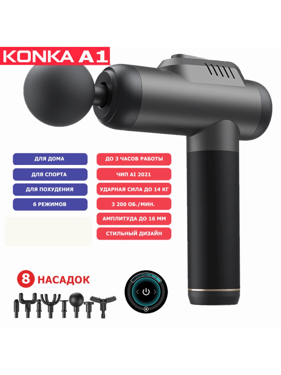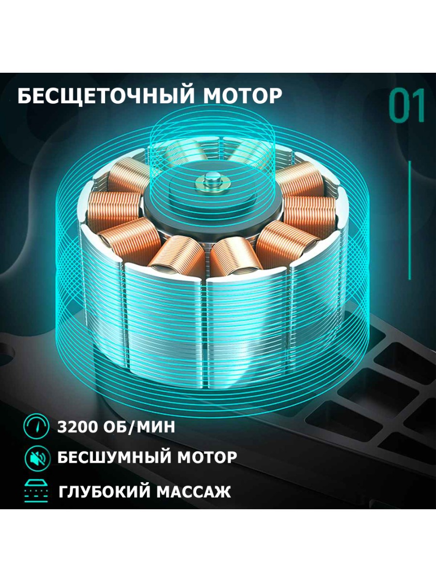 Оснащен новым чипом AI с искусственным интеллектом для оптимального использования энергии, распределения ударной силы и частоты вращения мотора, автоматически подстраивается под условия использования. В комплекте 8 массажных насадок.