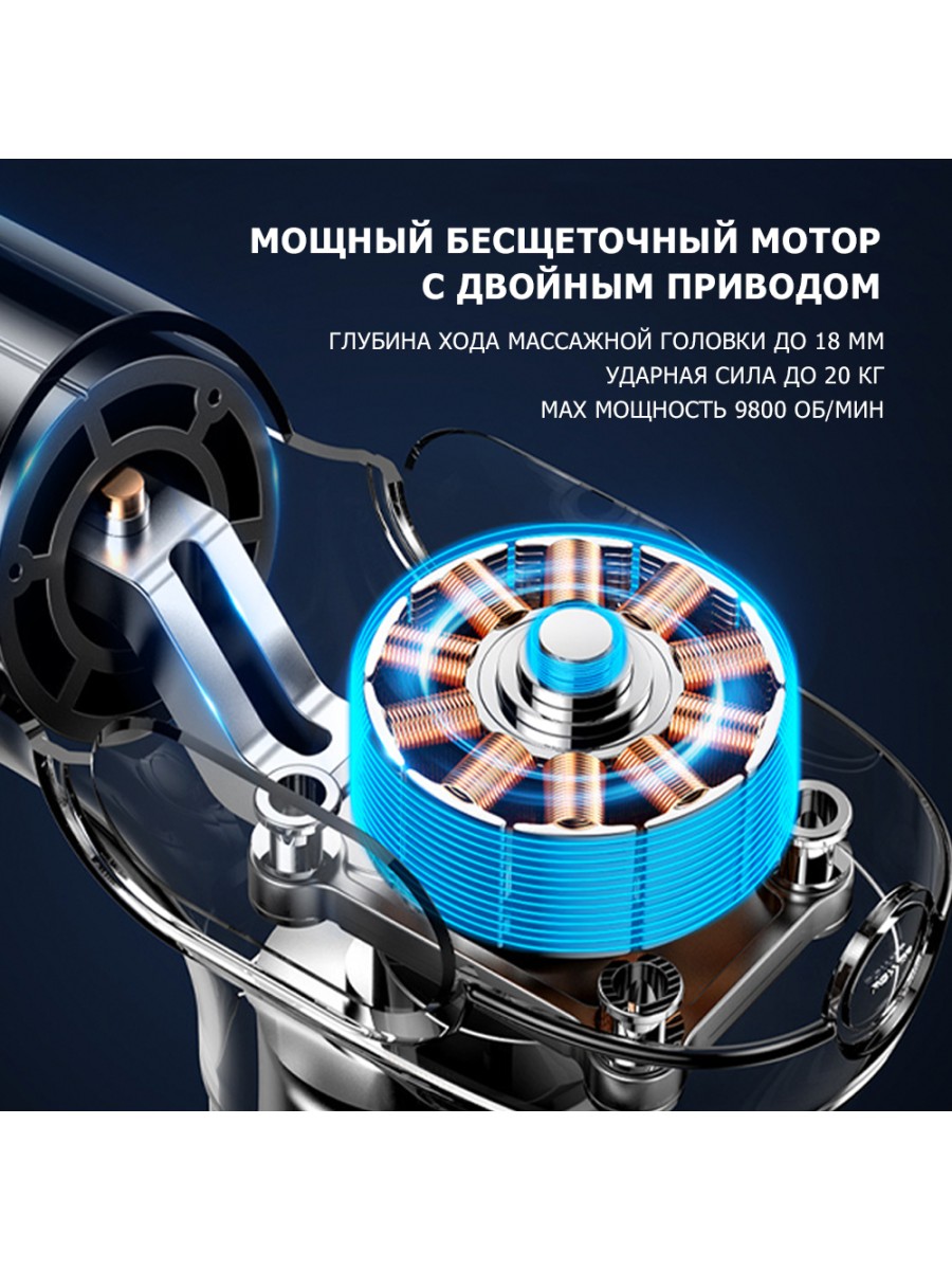 Интегральный механизм и более мощный бесщеточный мотор с надежной системой шумо-, вибро- подавления и защитой от падения создают дополнительный комфорт и удобство в использовании массажера.
