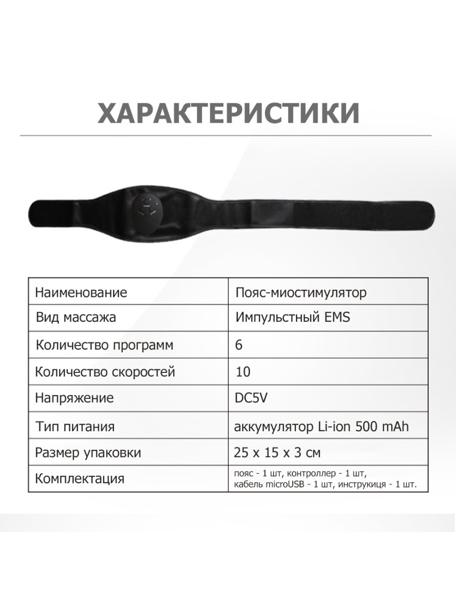 Пояс миостимулятор для тренировки пресса и похудения FORTENGO EMS-050, 6 программ, EMS, универсальный размер, черный используется для массажа тела: рук и плеч, живота, бедер, поясницы, для похудения, снижения веса, устранения целлюлита и растяжек.