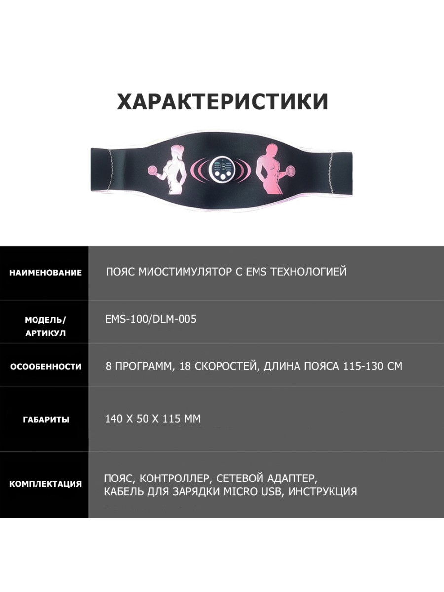 Пояс миостимулятор для похудения EMS-070 — это умный помощник на каждый день. С ним Вы сможете быстро и легко:
